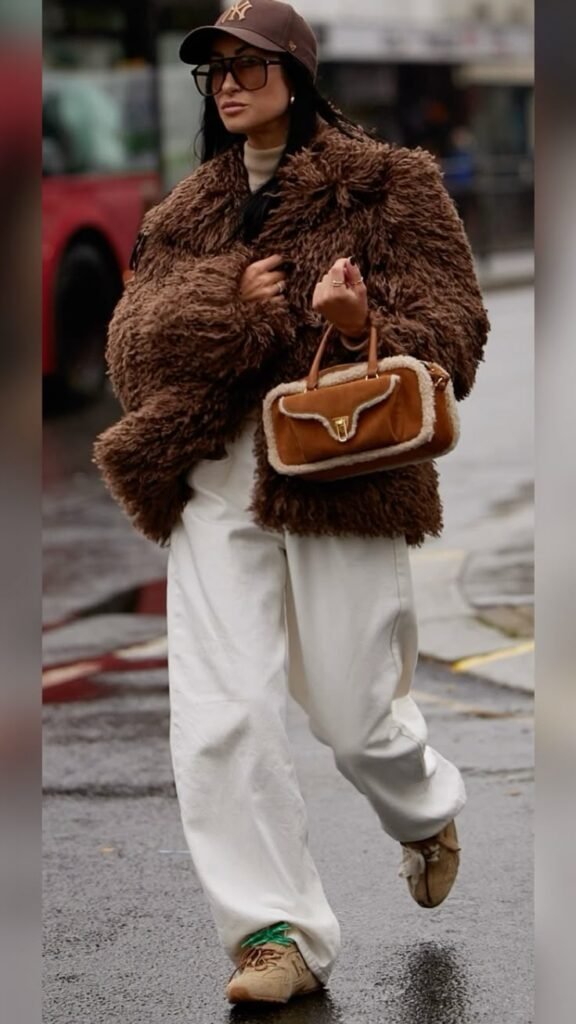 Fashion Tip: Opt for a cropped shearling jacket and pair it with high-waisted jeans for an effortlessly chic winter look.