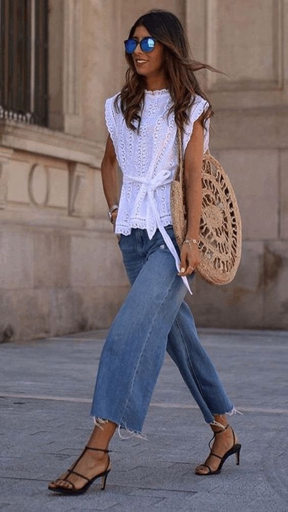 Style tip: Choose wide-leg cropped jeans for airflow and a modern, flattering style.