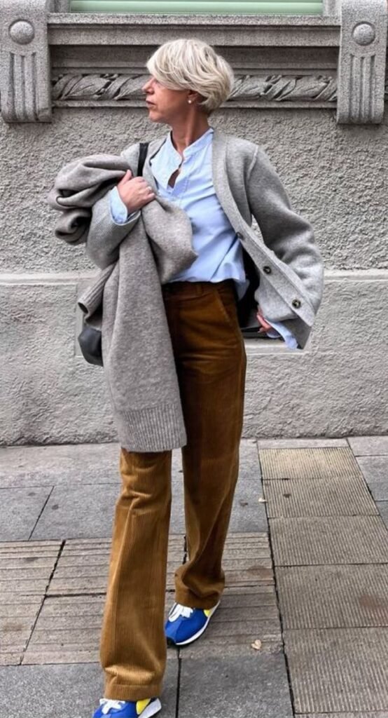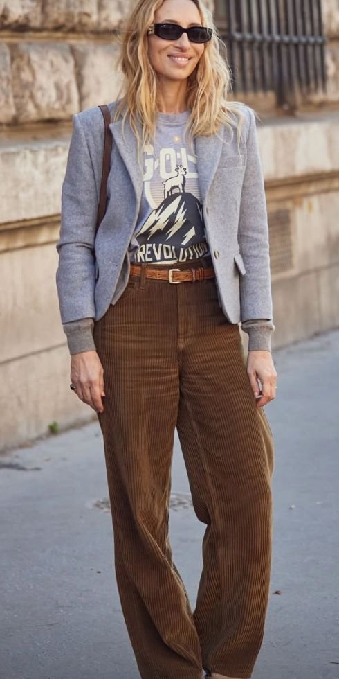 Nothing captures autumn’s cozy charm quite like brown corduroy trousers. With their soft texture and retro appeal, they bring warmth and character to any outfit.