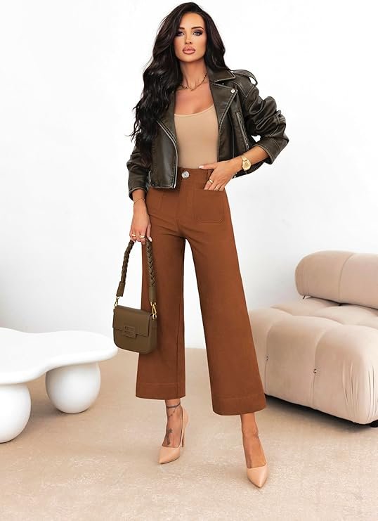 Few pieces capture the effortless sophistication of brown wide-leg trousers. With their fluid silhouette and graceful movement, they embody modern elegance while offering ultimate comfort. This style flatters nearly every body type, elongating the legs and creating a sleek, confident line that feels both polished and relaxed.