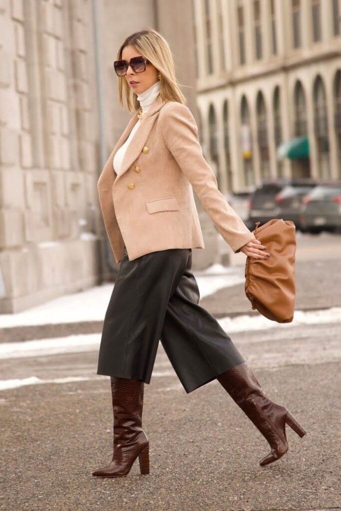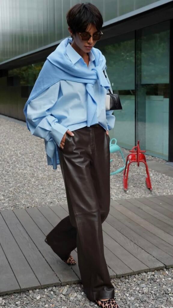 Fashion Tip: To keep the look refined, choose matte or soft leather finishes rather than overly glossy ones. Brown leather works beautifully with warm neutrals, cream, and muted metallics for a balanced, chic appearance.