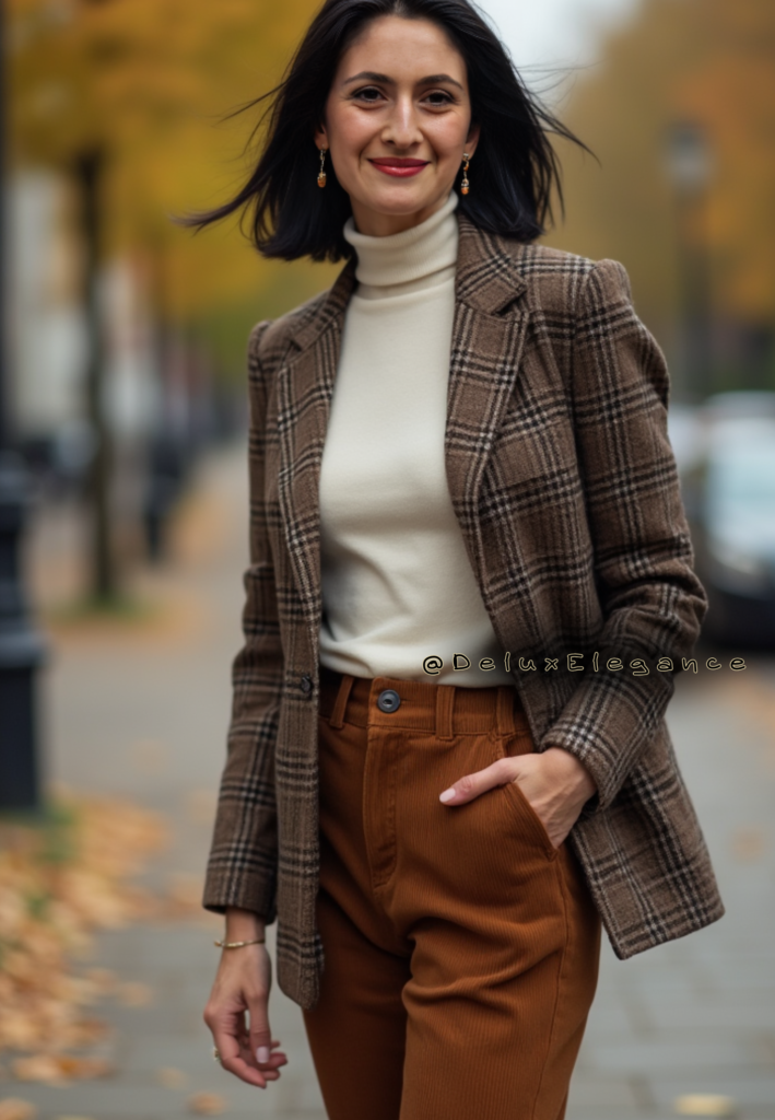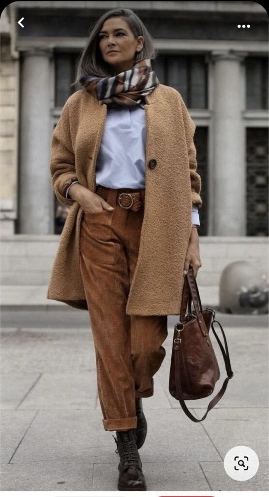 Fashion Tip: Corduroy already makes a statement through texture, so keep other fabrics smooth—like cotton or silk—to avoid visual heaviness. Earthy tones such as cream, rust, or deep forest green pair beautifully with brown corduroy.