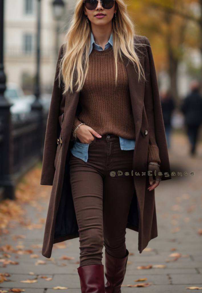 Fashion Tip: Brown denim pairs beautifully with warm tones—such as camel, mustard, and rust—but also looks striking when contrasted with crisp white or deep navy. Add a structured belt or statement bag to elevate the look from simple to chic.